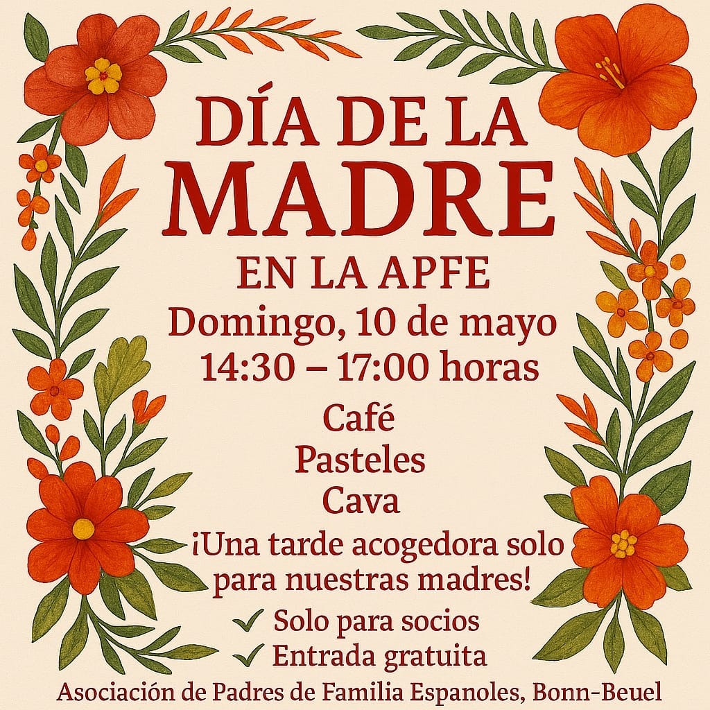 Invitamos cordialmente a todas las madres a pasar una tarde agradable con café, pasteles y una copa de cava.