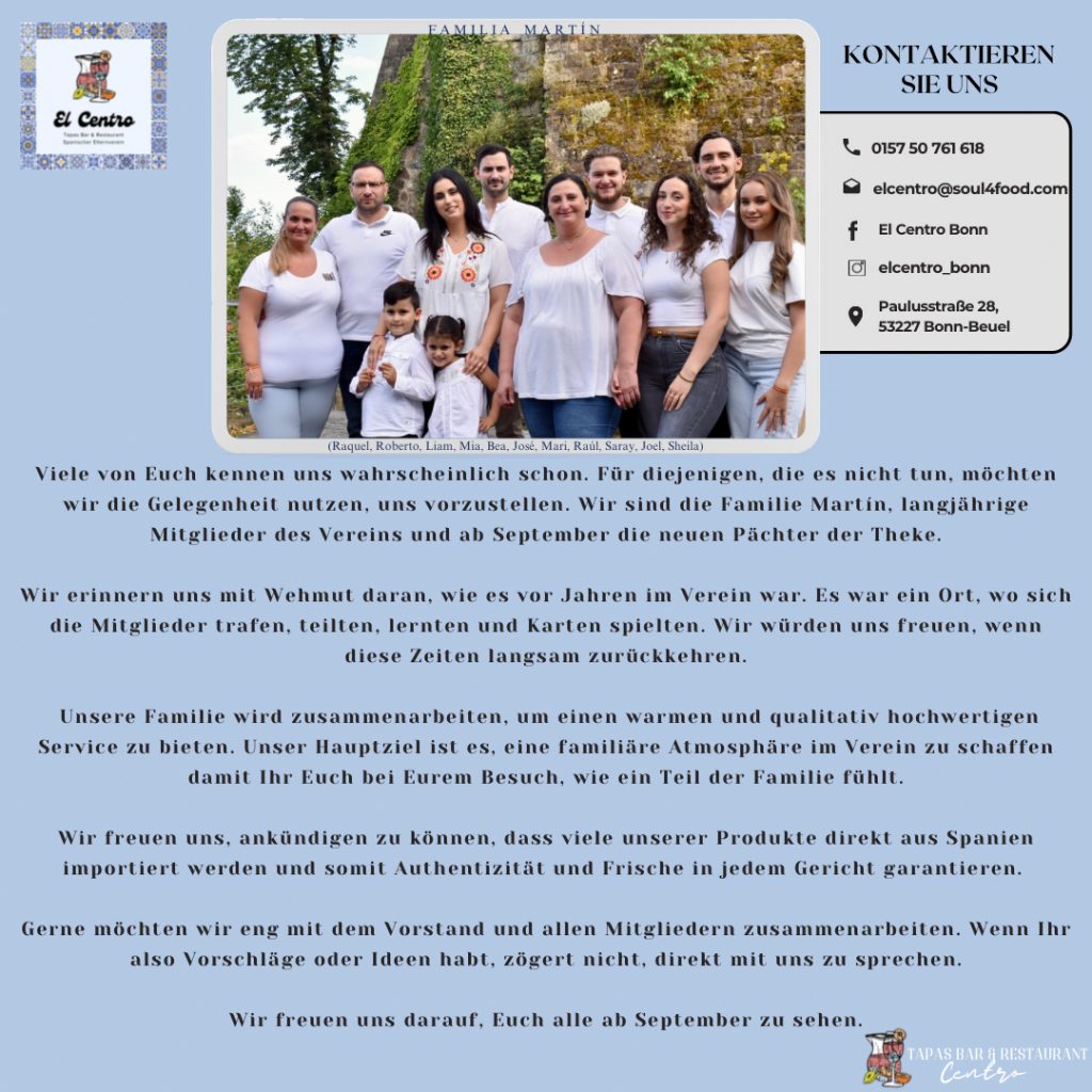 Wir freuen uns, euch dann wieder im Vereinshaus begrüßen zu dürfen!